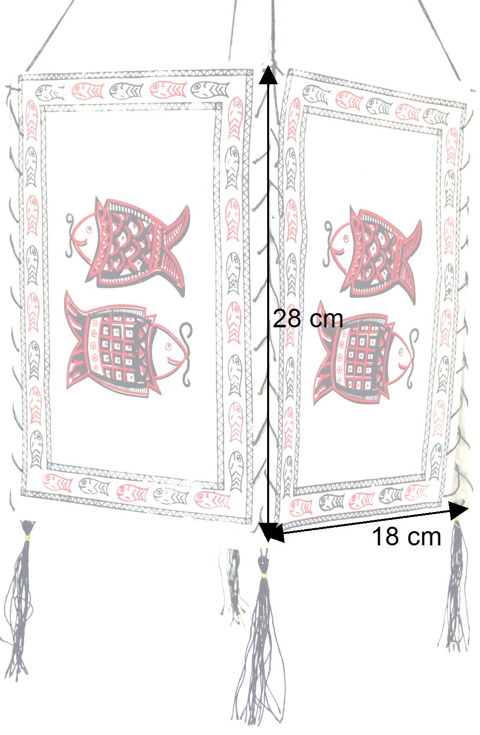 Lokta Papier Hänge Lampenschirm, Deckenleuchte aus handgeschöpftem Papier - Fisch weiß/bunt - 28x18x18 cm