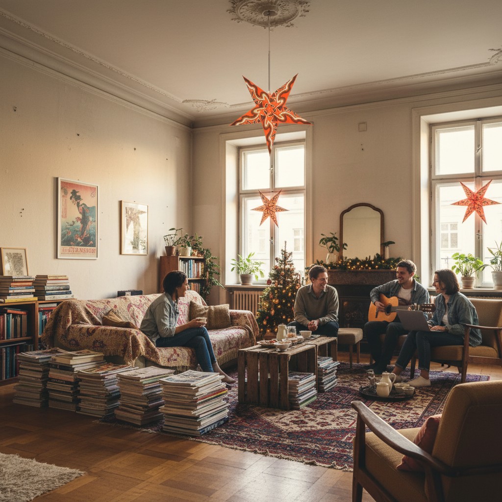 Der Stern ist flach, wird „aufgefächert“ und oben ist dann ein ganz kleiner Magnet versteckt, der den Stern dann in Form hält