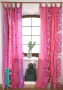 Seidiger Vorhang (1 Stk.) Gardine aus Patchwork Sareestoff, Unikat - rot bunt - 250x100x0,2 cm